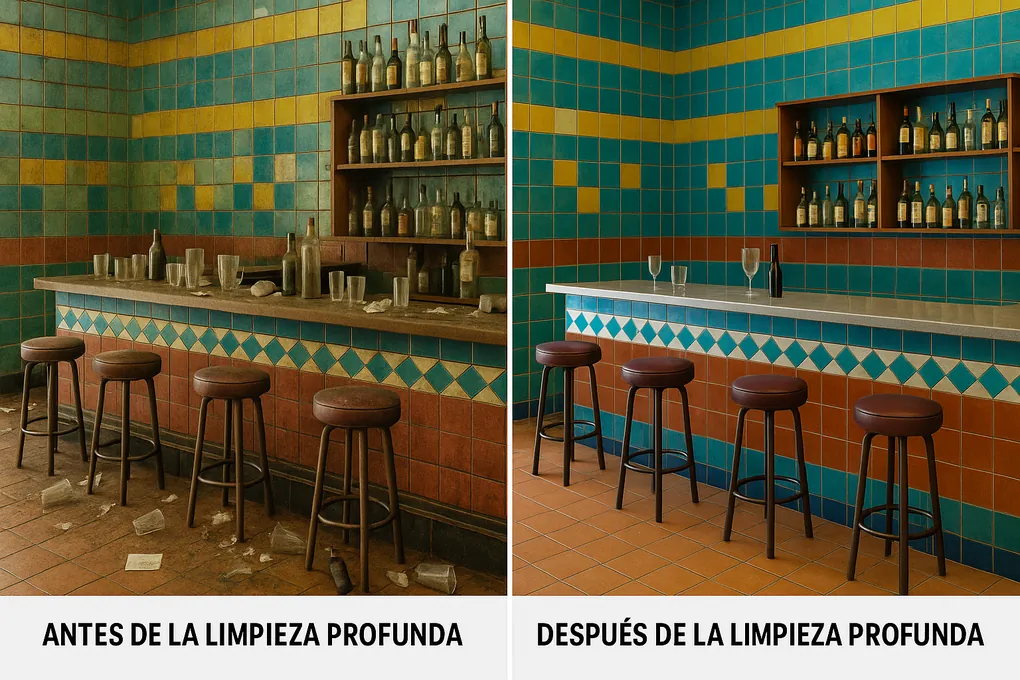 La limpieza regular mantiene la higiene diaria. La limpieza en profundidad elimina suciedad incrustada, desinfecta superficies y trata zonas de difícil acceso, garantizando un entorno totalmente higienizado.
