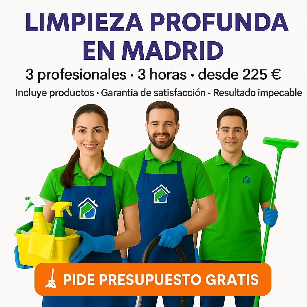 En Limpiezas en General Madrid ofrecemos servicios de limpieza profesional para hogares, oficinas y comunidades en toda la Comunidad de Madrid. Nuestro equipo está formado por personal propio, con amplia experiencia y materiales de primera calidad. Además, contamos con una garantía de servicio única: si algo no queda a tu gusto, realizamos un repaso totalmente gratuito hasta dejarlo impecable.